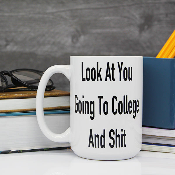 Look At You Going To College Coffee Mug, Funny and Cool Novelty Mugs