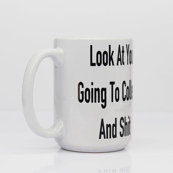 - Our Look at You Going to College and Shit coffee mug are made to withstand everyday use and it is dishwasher and microwave safe.