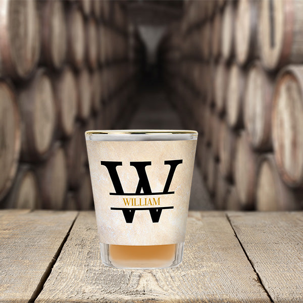 Custom Shot Glass with Gold Rim Sets for Groom Groomsman or Best Man with Initials Name and Date