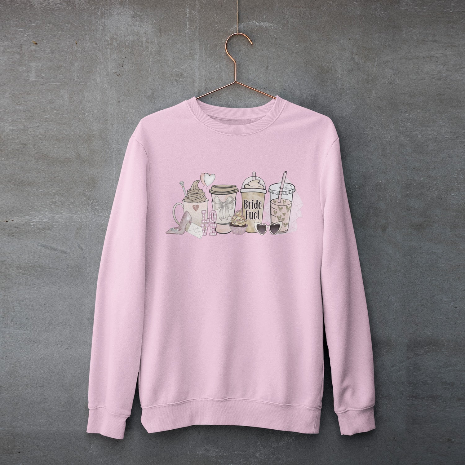 Cute and funny shirt for Brides and Brides to Be showing all the drinks the bride needs with the print Bride Fuel. Gift as a set by adding one of the several drinkware items we have available for the bride. This is a made to order item and you can select from different shirt styles including crewnecks, sweatshirts, hoodies, tank tops, crop tops, slouchy tee and more.
