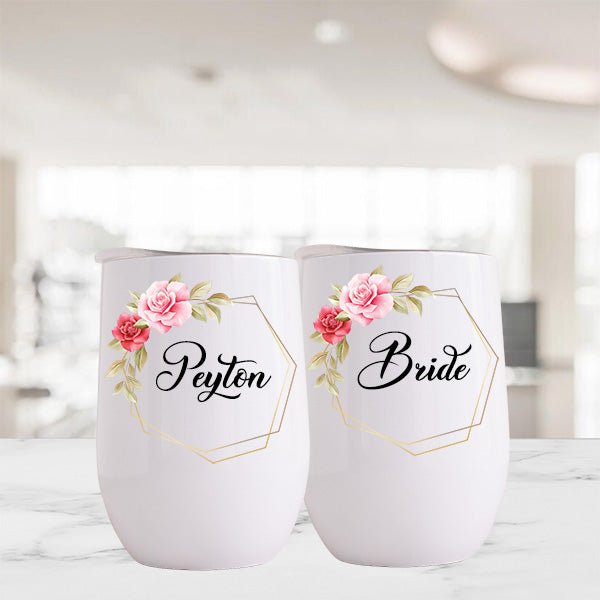 Personalized Bridesmaid Wine Tumblers with Custom Floral Design & Text