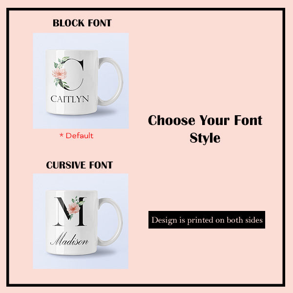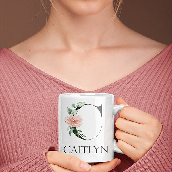 Personalized Mug with Floral Inital and Name, Letters A-Z | Coffee Mug for Bridesmaid Gift, Teachers Gift, Girls Trip Gift, Favors & More