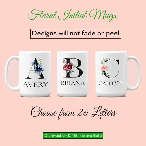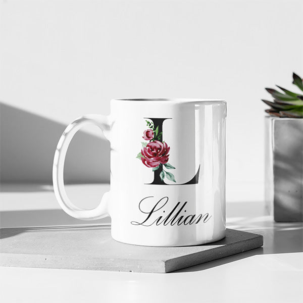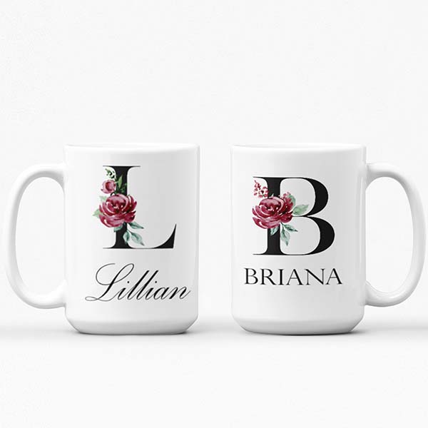 Personalized Mug with Floral Inital and Name, Letters A-Z | Coffee Mug for Bridesmaid Gift, Teachers Gift, Girls Trip Gift, Favors & More - 11oz / White is backordered and will ship as soon as it is back in stock.