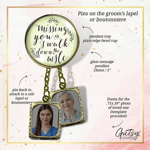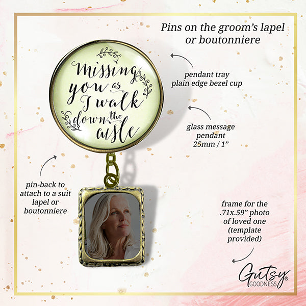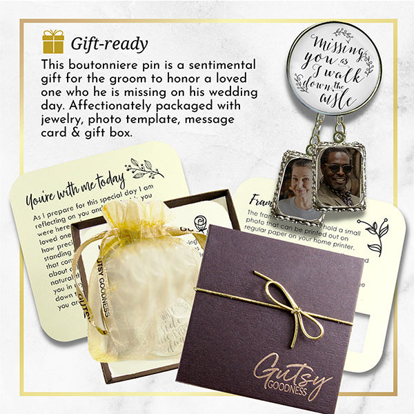 Wedding Memorial Boutonniere Pin For Men, Missing You Wedding Charms by Gutsy Goodness - Silver Tone/Two Frames is backordered and will ship as soon as it is back in stock.