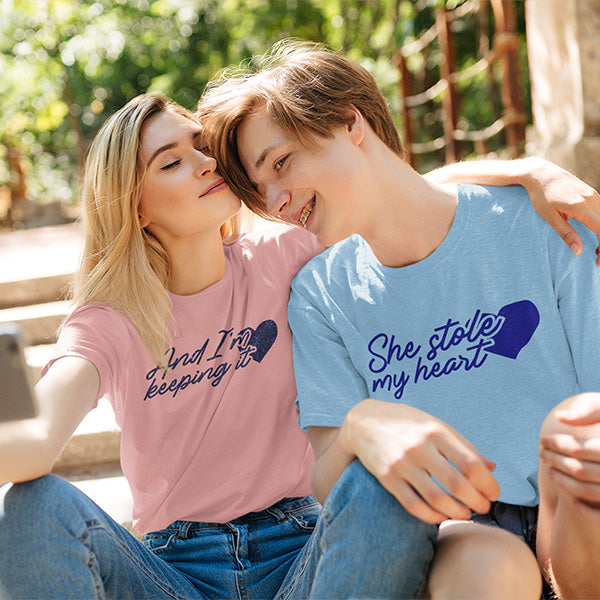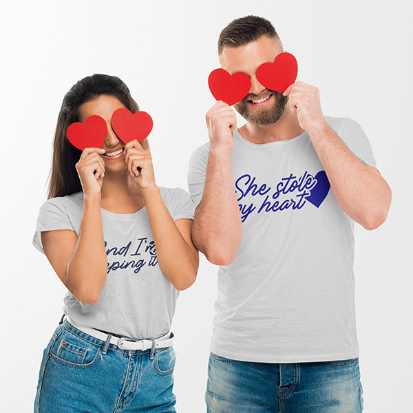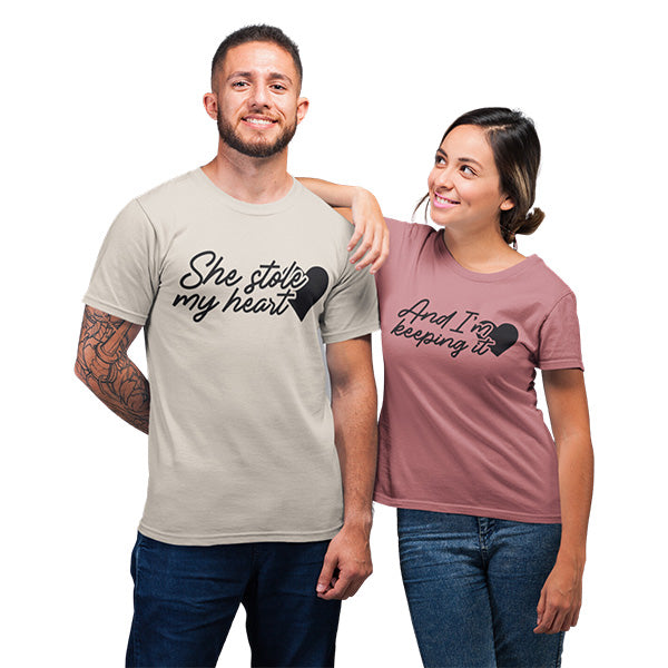 Cute She Stole My Heart and I Am Keeping It Matching Couple Tshirts with Multiple Styles