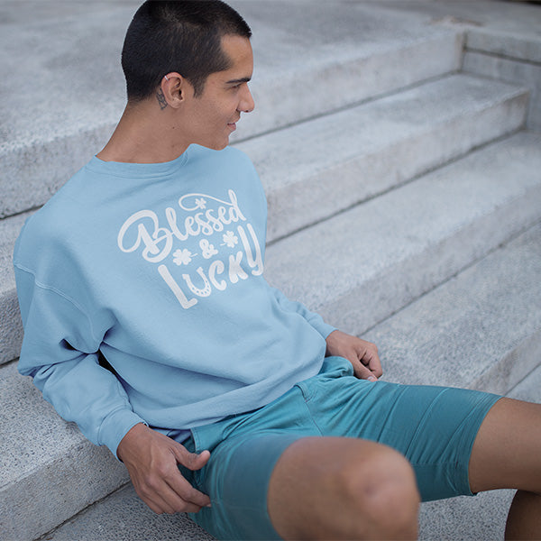Blessed & Lucky Shirts for St. Patrick's Day Outfits. These are a great alternative that the traditional St. Patty's Day Shirt with the addition of Blessed and Lucky. A great Christian Shirt option. We offer a wide array of sizes for youths and adults. Adult sizes range from XS to 6XL. We offer this design for St. Patrick's Day Shirt in several styles including short sleeve crewnecks, hoodies, sweatshirts, long sleeve tees and Raglan Style Shirts. Customize your Religious Sweatshirt or any other style top, by choosing standard print or glitter print. This design makes a nice statement while still being subtle.