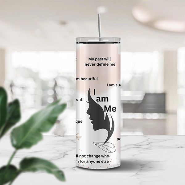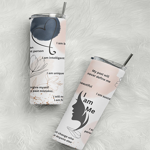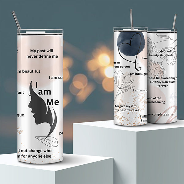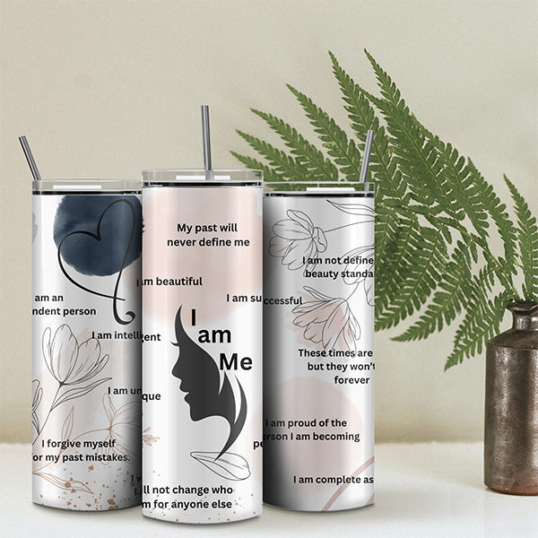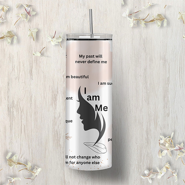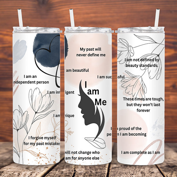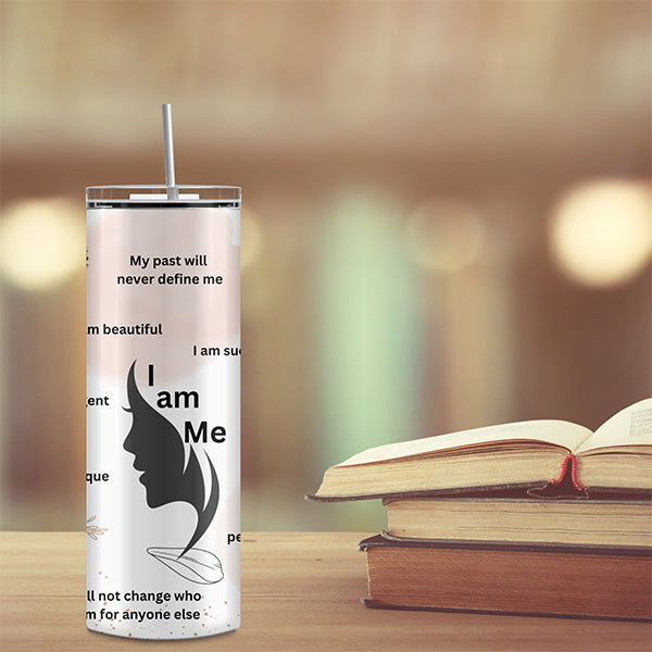 I Am Me Motivational Tumbler with Daily Affirmation Quotes for Teens and Women