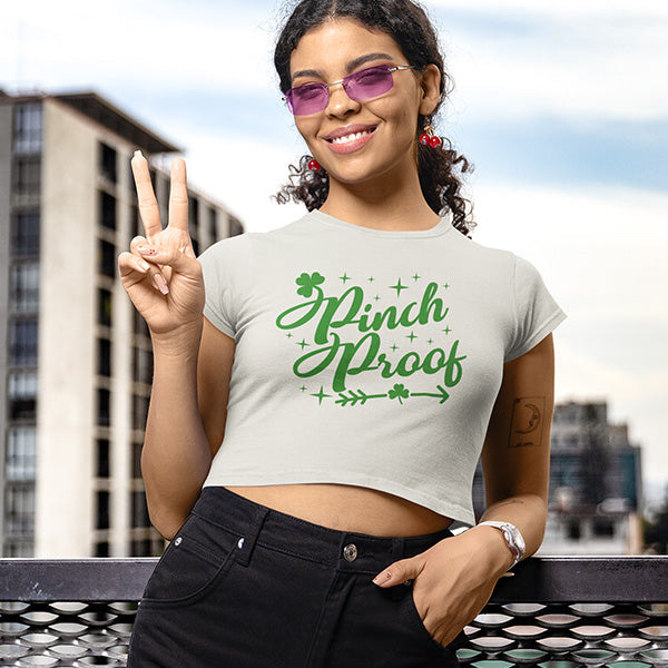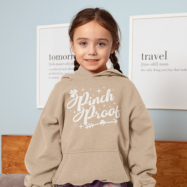 Just a cute Saint Patrick's Day Shirt for toddlers, girls and women of all ages. Our Pinch Proof shirt is fun and perfect for the occasion. We offer this design for Saint Patrick's Day Shirt in several styles including short sleeve crewnecks, hoodies, sweatshirts, long sleeve tees and Raglan Style Shirts. Customize your Saint Patty's Day Sweatshirt or any other style top, by choosing standard print or glitter print. Makes for a great mommy and me matching shirt.