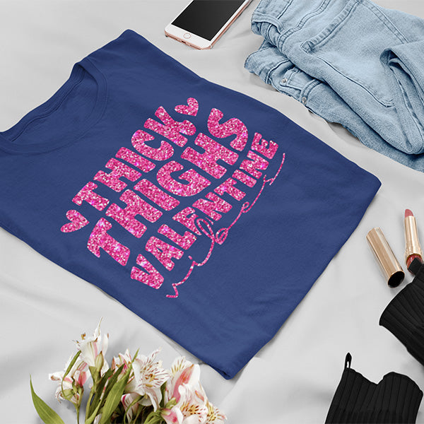 Thick Thighs Valentine Vibes Shirts for Valentine's Day. It's great self love shirt that is available in a variety of styles including crewnecks, v-necks, hoodies, sweatshirts, long sleeve tee, tank tops and crop tops. Pair with a great pair of jeans and show off those thighs.