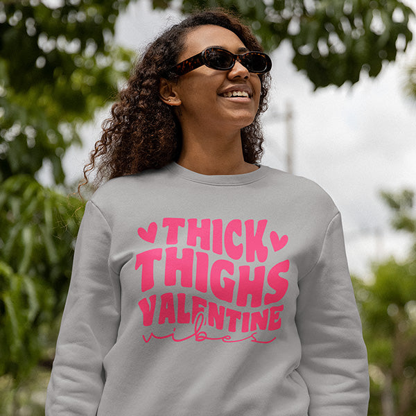 Thick Thighs Valentine Vibes Shirts for Valentine's Day Self Love and Plus Size Tops - Crewneck TShirt / 2T is backordered and will ship as soon as it is back in stock.