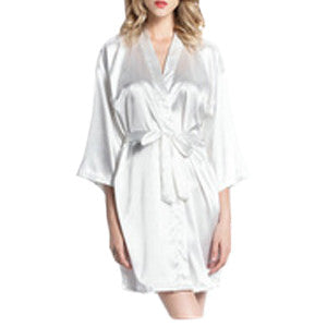 - Bridal Robes measures 36 inches to 38 inches from shoulder to hem, and will generally fall about 4 to 5 inches above the knee. They are designed with a kimono style and has 3/4 sleeves