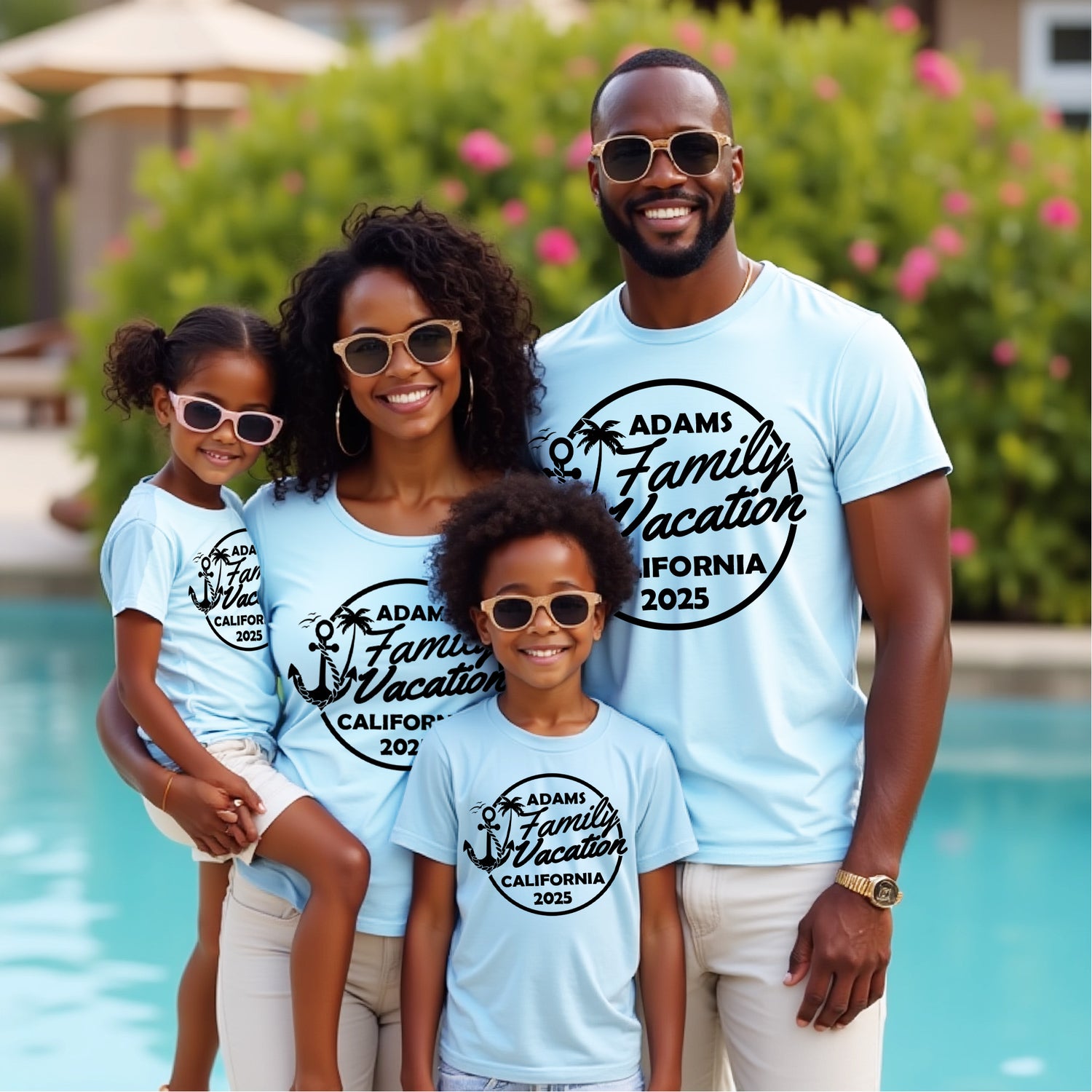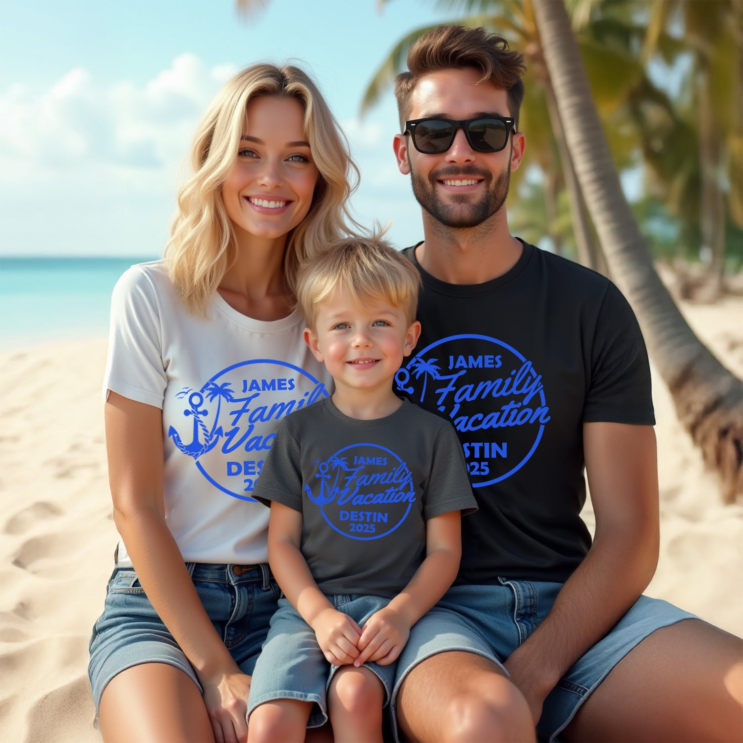 Ideal for family beach photos, group vacations, and resort outfits, our matching family vacation shirts come in all sizes and colors. Create custom family shirts for beach trips, family cruises, or tropical vacations. Perfect matching shirts for family photos, beach portraits, or coordinated vacation looks.
