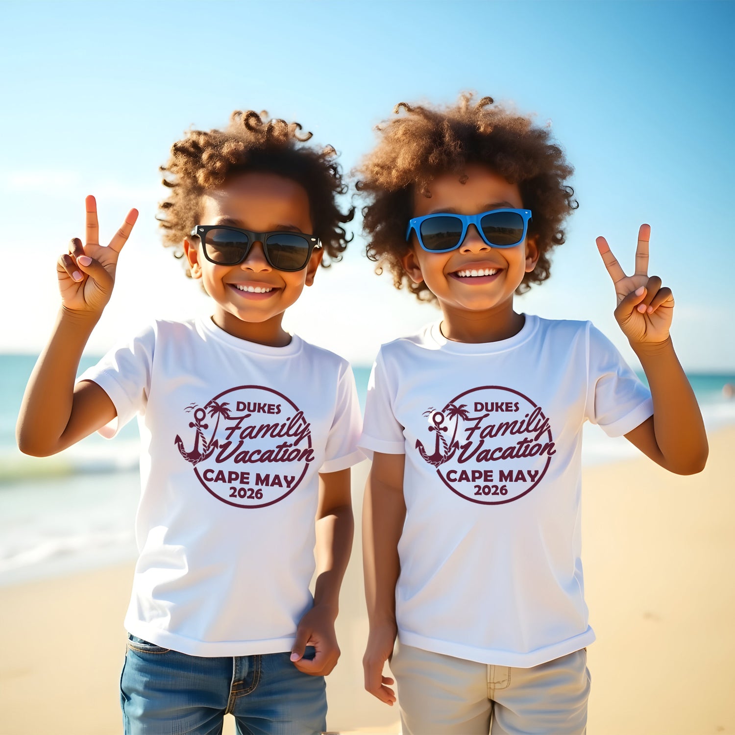 Add your family name, vacation year, and location. Great for family matching outfits, custom beach shirts, and vacation photo tees.