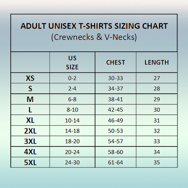 - T-Shirt offers a unisex design and is available in Small to 6XL. Runs long, so provides versatile wear. Can tie in a knot in front or back, tucked in jeans or worn with tights.