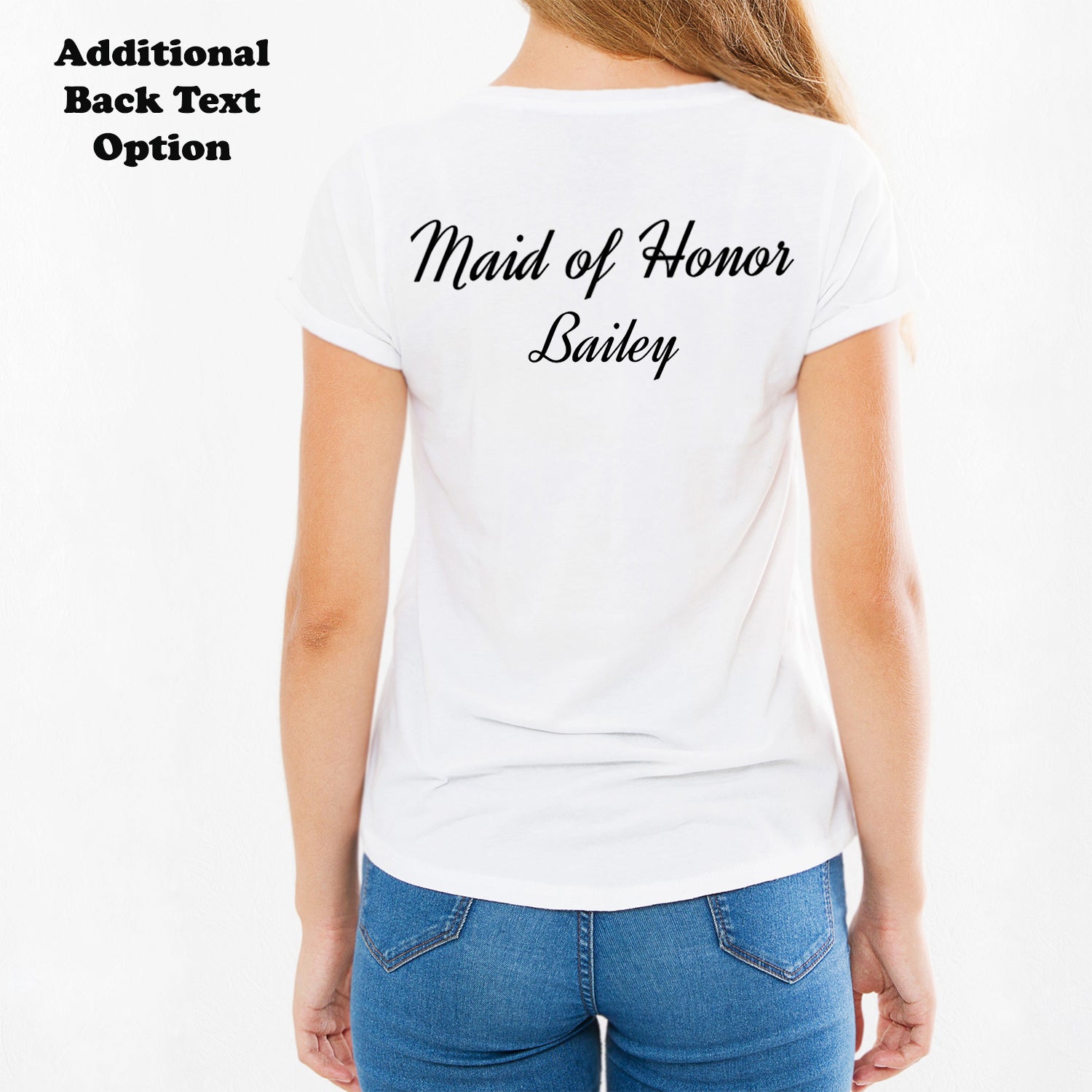 - Our Personalized Bachelorette Party T-Shirts set of four is a great gift for your intimate bridal party. Whether heading to the nightclub or bar, throwing a beach party, or just staying in, these matching bachelorette shirts will make for some great pics