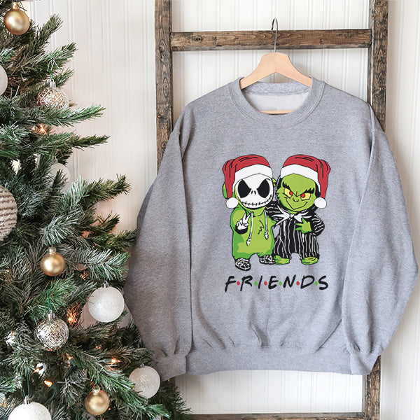 Cute Jack and The Grinch Friends Christmas Sweatshirt for Kids and Adults
