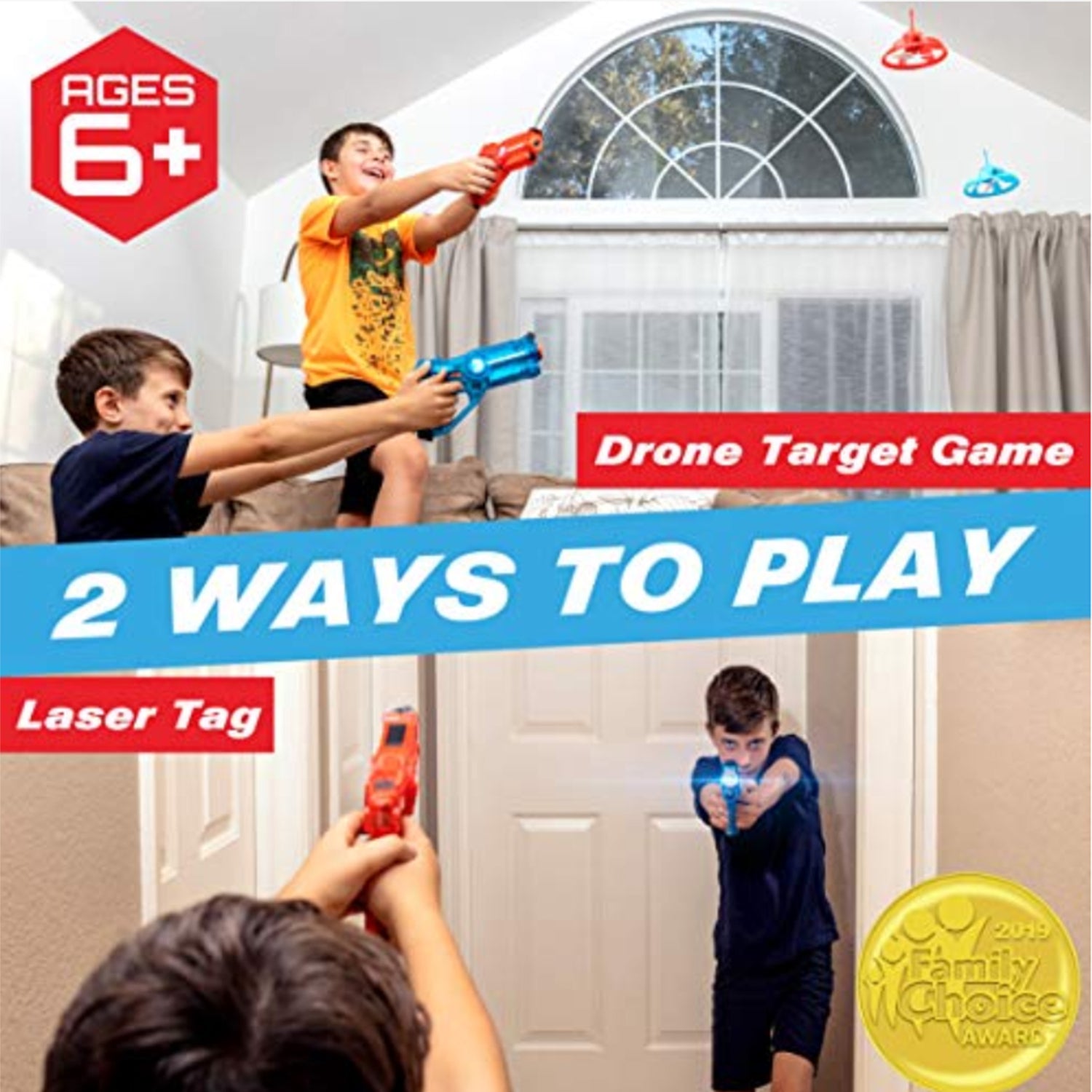 The Laser Launchers Laser Tag Drone Target Set is great for both boys and girls. Ready aim fire, your laser tag game is great for the whole family and friends to have fun. Each laser tag gun set comes with 2 laser guns and 2 flying and spinning target drones. Shoot for extra dimensional fun with the rechargeable LED spinners that stay afloat with every direct hit. The rule is simple: Defeat the opposing team while keeping these target drones up in the air. Are you up for the challenge?