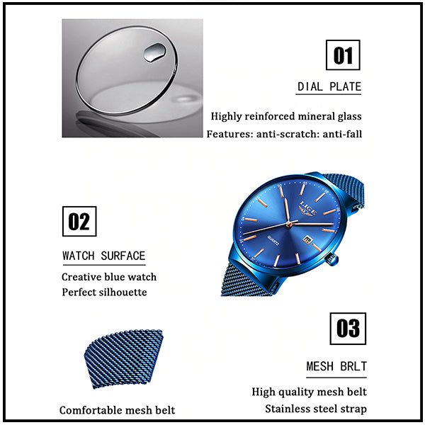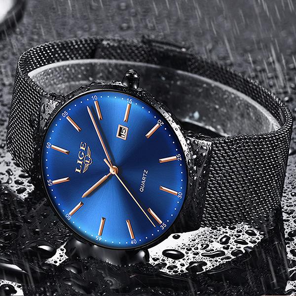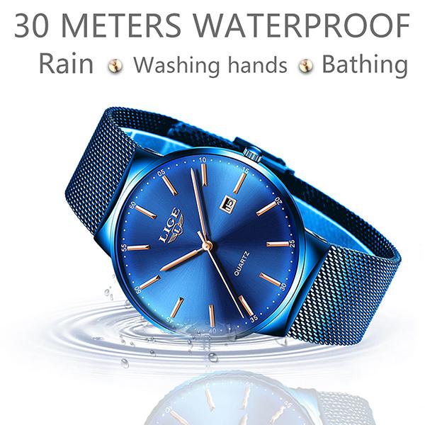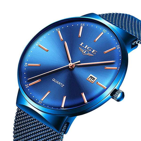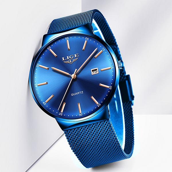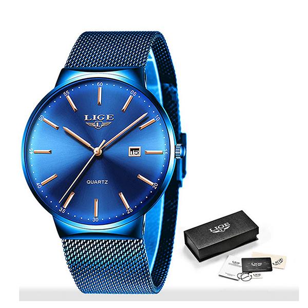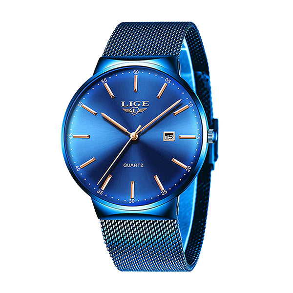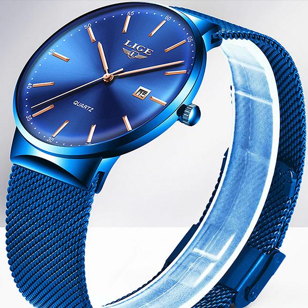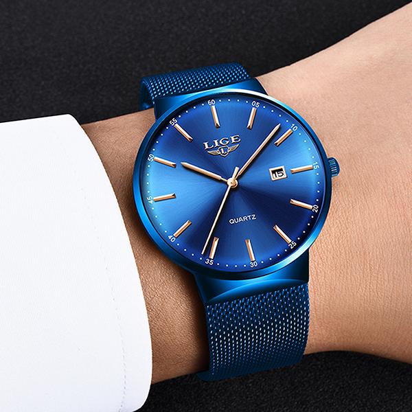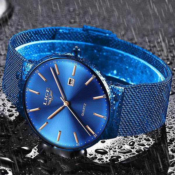 LIGE Mens Classic Elegance Watch, 30M Waterproof, Stainless Steel Mesh - Blue on Blue is backordered and will ship as soon as it is back in stock.