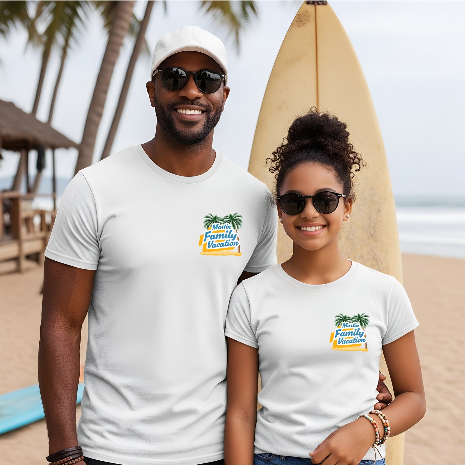 Our custom matching family vacation shirts are perfect for your next beach getaway or family reunion. These personalized family beach shirts provide comfortable, stylish matching family outfits for all ages and sizes.