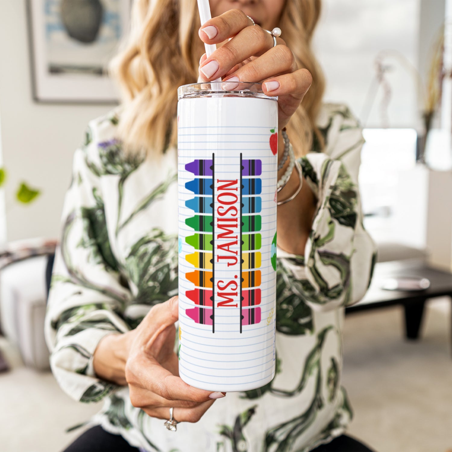 Personalized Crayon Name Tumbler for Teacher, Teacher Gift for Appreciation, Birthday, or Christmas