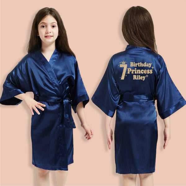 Pretty Girl Robes w Birthday Number for Birthday Girl & Birthday Squad, Personalized Girls Bathrobes with Name, Spa Birthday Party Robes