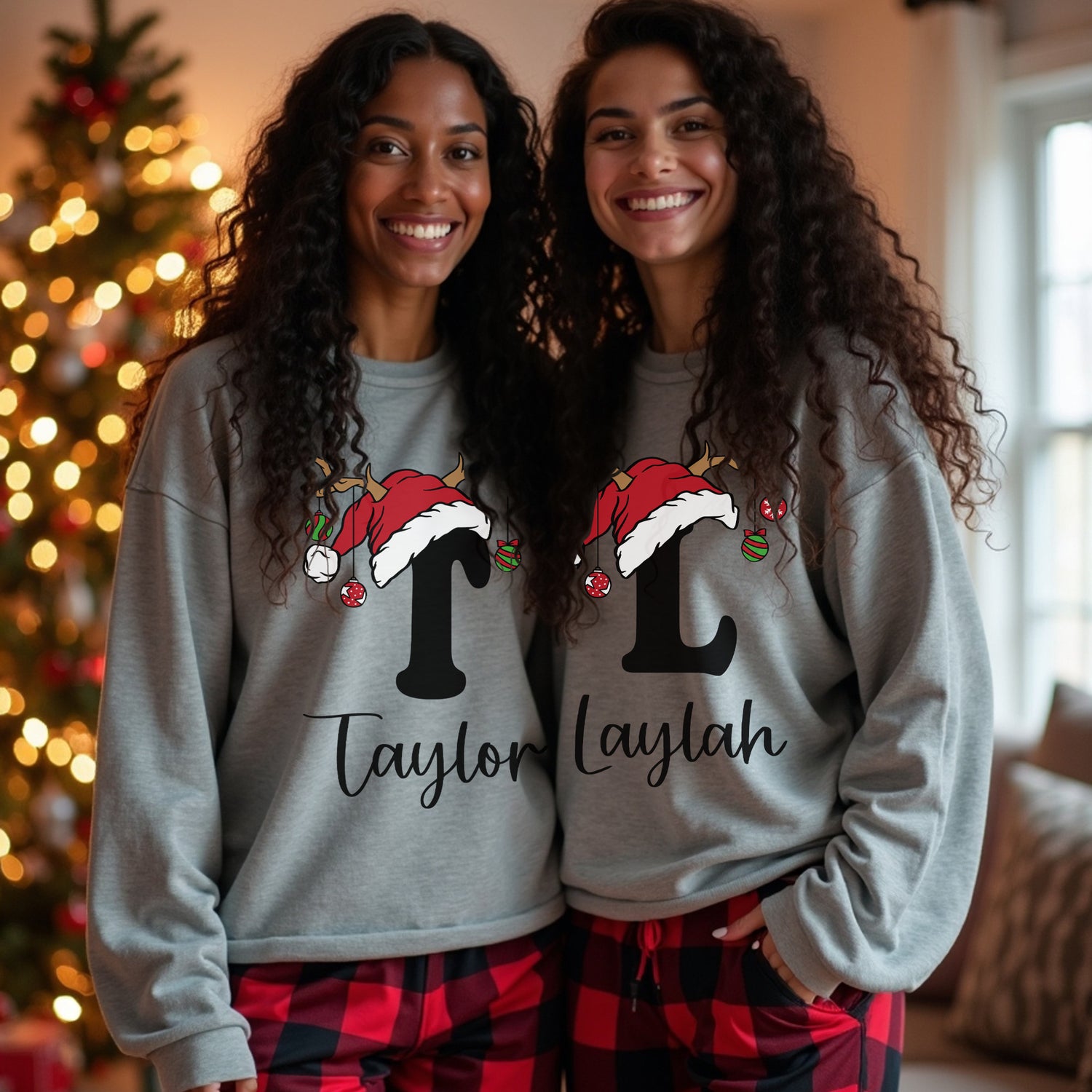 Matching family reindeer pajamas. Make this holiday season extra special with our Personalized Matching Family Christmas Pajamas Set! Available in sizes YXS-2XL, these matching Christmas pjs includes a cozy t-shirt, long sleeve, sweatshirt, or hoodie and plaid pajama joggers. Perfect for Christmas morning and family photos, personalize the Christmas pajamas with your name and initial for a unique touch. Not only is this Christmas pajama set great for family it is great for friends, groups, couples, teachers, coworkers, and more. Spread the joy and get matching PJs for the whole family!