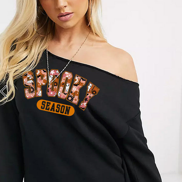 Cute Vintage Spooky Season Off the Shoulder Sweatshirts for Women