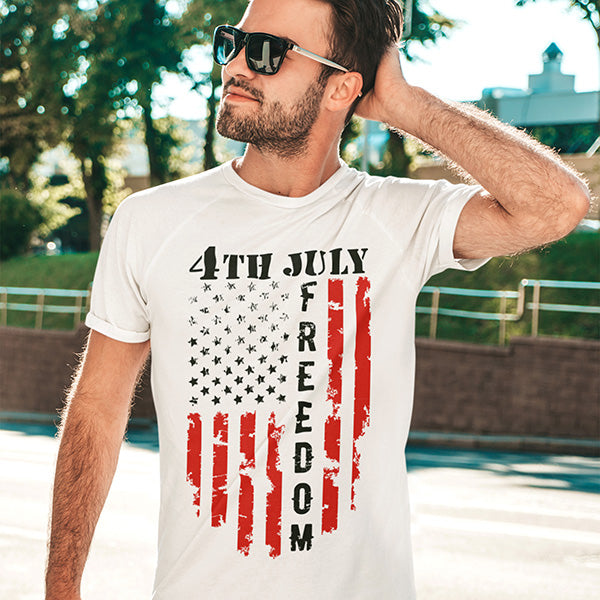 This cool Fourth of July Shirt is perfect for celebrating Independence Day in style. Featuring bold, patriotic imagery and slogans, this July 4th shirt is sure to make a statement. Show your patriotism with the Stars and Stripes Forever design, Red, White, Blue, and Let Freedom Ring.